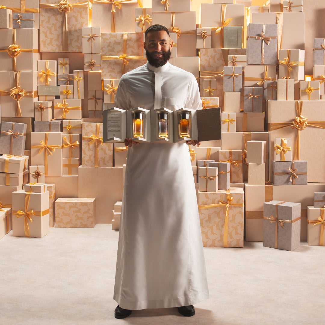 Ingredients: Saffron, Cardamom, Cinnamon, Roses, Sandalwood, Oud, Amber, Musk, Leather