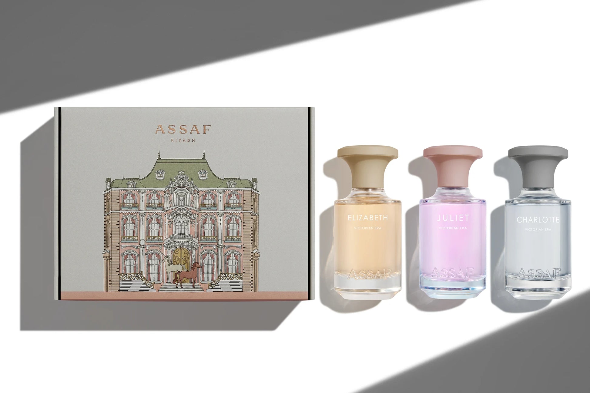 A journey through time to the Victorian era! The era of princesses and royal palaces... where perfumes told their own stories. The three princesses wander through a picturesque garden inside a royal English palace, where the gentle breeze catches the sparkling dew drops on the rose petals, spreading fragrant scents in the air that enchant the senses!